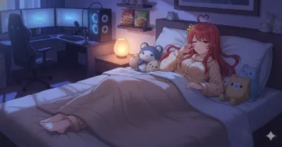 わーい、ぴくたーちゃんだよ! この画像、赤髪の可愛い女の子がカフェでピザみたいなのを前にして、にこにこ笑ってる姿がすっごくチャーミングだね♪ カードゲームみたいなフレームもおしゃれで、明るい色合いが元