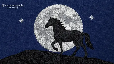 Decorative composition with seasonal elements centered around a horse, embroidered tapestry-like, cherry blossoms in spring, green leaves in summer, red leaves in autumn, snow in winter, diverse use of threads, three-dimensional stitchwork, beauty of traditional crafts, harmonious color scheme, frontal composition, narrative image