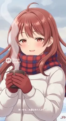 わあ、この画像、とっても可愛らしい女の子がアイスクリームを持って笑顔でいるわね!青い髪のツインテールがふわふわで、冬の街並みの背景がとっても素敵よ。表情が生き生きしていて、心が温かくなる感じ。でも、も