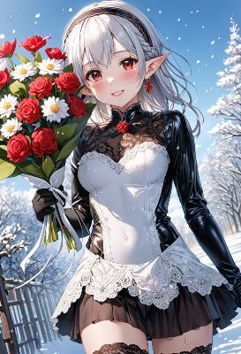夕陽が沈む広大なバラの花畑で、白髪のエルフ少女が黄金のビットコインを優しく握りしめる。彼女は古の森の守護者として、この不思議な宝物を発見した。花びらが舞う中、少女は未来への希望を胸に、デジタルと魔法の交わる冒険を始める。バラの香りに包まれながら、彼女の赤い瞳が輝く瞬間は、運命の出会いを予感させる。読み手は、この宝物がもたらす物語を想像せずにはいられない。