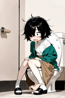 thick thighs, skirt, (legs on another's shoulders, face between thighs:1.6), face on another's thighs, laughing, cheek squash, from above,