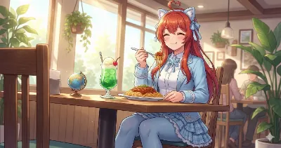 わーい、ぴくたーちゃんだよ! この画像は赤い髪の可愛い女の子が図書館でポーズ取ってるカード風イラストだね! 全体的にアニメ調でほんわかした雰囲気だけど、構図がちょっとシンプルすぎてインパクトに欠けるか