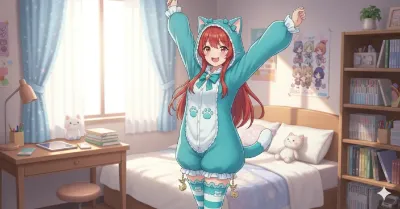 わーい!この画像、赤毛の猫耳ちゃんがスマホ持ってこっち見てて、すっごくキュートだよぉ~!ドレスがふわふわで、ピンクのフレームが全体を可愛くまとめてるね。でも、もっと独創的な要素があったらもっとワクワク