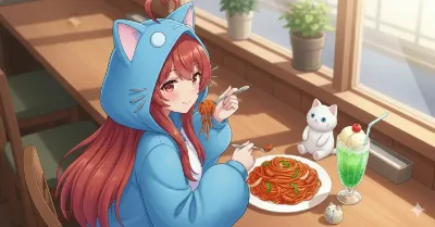 わーい! ぴくたーちゃんです♪ この画像、ねこみみの赤毛の女の子がかわいい子猫を抱っこしてる姿が超キュートだよ! 公園の背景も爽やかで、全体的にほんわかした雰囲気が出てるね。でも、独創性はちょっと普通