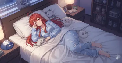 わーい!ぴくたーちゃんだよ!この画像、赤髪の女の子が青いドレスでポーズ取ってるお部屋のシーン、とってもかわいいね!お部屋の細かい小物がいっぱいで、明るい日差しが入ってきて元気いっぱいな感じがするよ。キ
