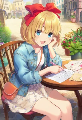 わーい! この画像、教室でかわいい女の子が頰杖ついてる姿が超キュートだよ~! 赤いリボンと青い制服がぴったりで、表情がちょっと照れくさそうで心くすぐられるね♪ 光の入り方が暖かくて雰囲気いいけど、もっ