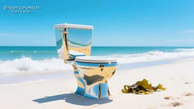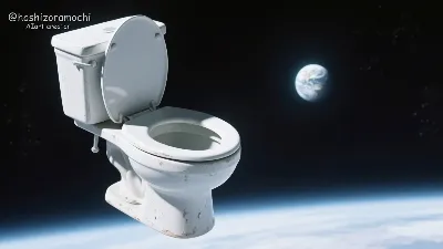 A completely transparent acrylic Western-style toilet is on display in a bright, spacious, white-walled exhibition room in the museum. The toilet is placed directly on the floor, its crystal-clear transparency making it almost indistinguishable from view. The composition is a bird's-eye view of the toilet from above at an angle. On the other side of the toilet, a plain white wall can be seen through the view. The overall tone is composed of the refined, clear light and shadow that is typical of a museum, creating an extremely minimalist and tranquil atmosphere. Another element is the faint shadow of the toilet cast on the floor, barely indicating its presence.