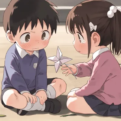 わあ、この画像、とっても可愛らしい女の子が教室でノートを取っている様子が描かれていて、心がほっこりしちゃいますね。柔らかい光が差し込む窓辺の構図が素敵で、彼女の大きな瞳と優しい表情が本当に魅力的です。