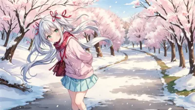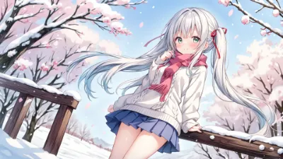 静かな雪景色に包まれた古い神社で、白銀の髪の少女が佇む。彼女は村の守り神の末裔で、冬の訪れとともに現れるという伝説の存在。冷たい風に頰を赤らめながら、遠くの灯りを眺め、失われた記憶を探す冒険の始まりを予感させる。訪れる旅人よ、彼女の瞳に映る秘密の物語に耳を傾けよ。雪が優しく舞うこの瞬間、奇跡が起きるかもしれない。