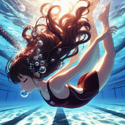 わー、ぴくたーちゃんだよ! この画像、 underwaterな女の子がびっくりした顔で浮かんでるの、すっごく可愛いね! 海の青いグラデーションがキラキラしてて、光の差し込み方が幻想的で美しいよ。サンゴ