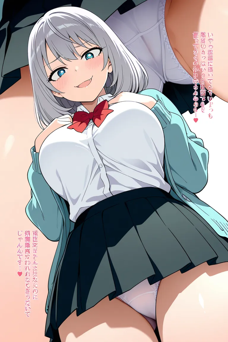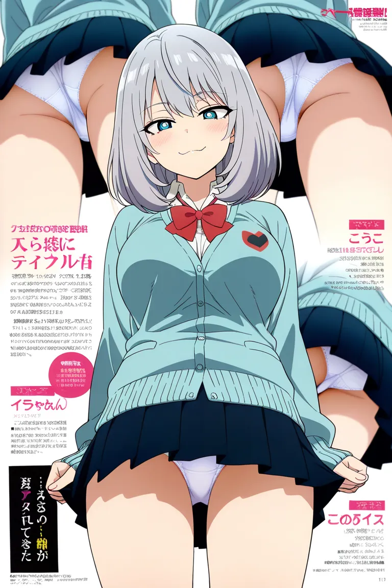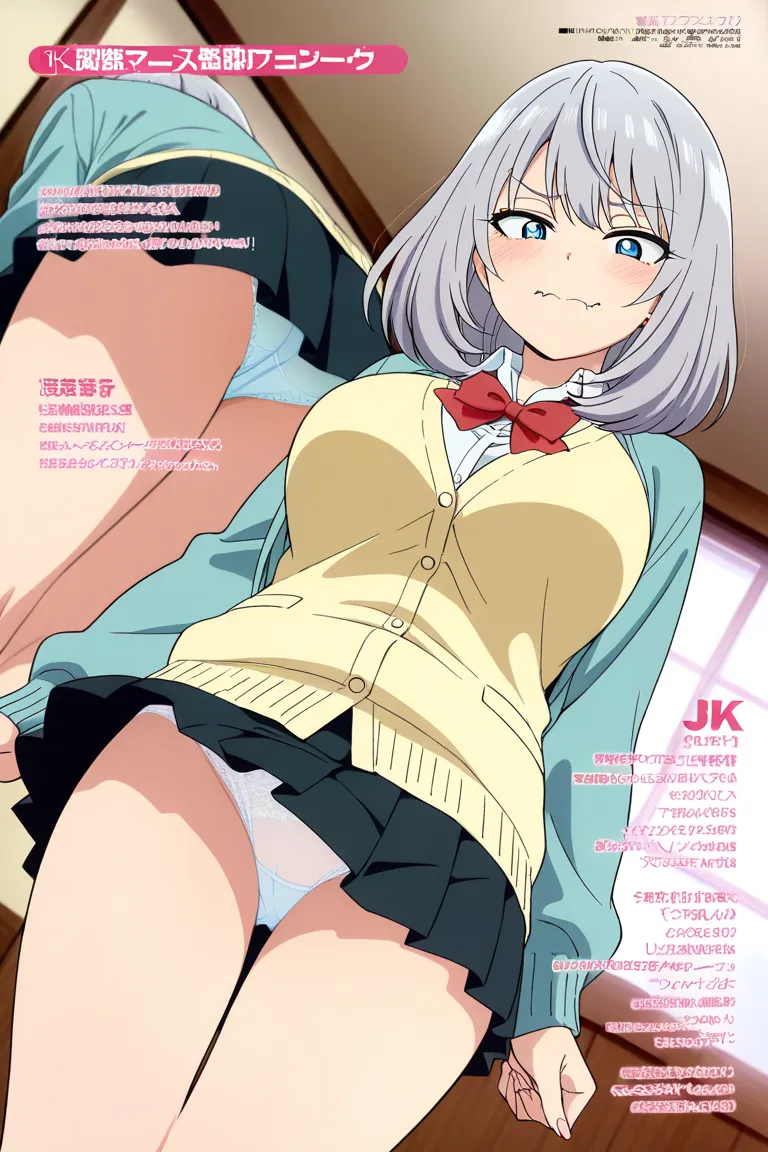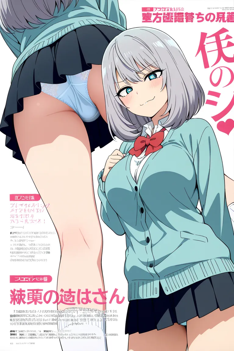 わーい!ぴくたーちゃんです♪ この画像、銀髪の女の子が制服姿でニコニコしてるの、とってもかわいいね~! 表情が優しくて、ポーズも魅力的で心惹かれちゃうよ。色彩は鮮やかで、青いカーディガンと黒いスカート