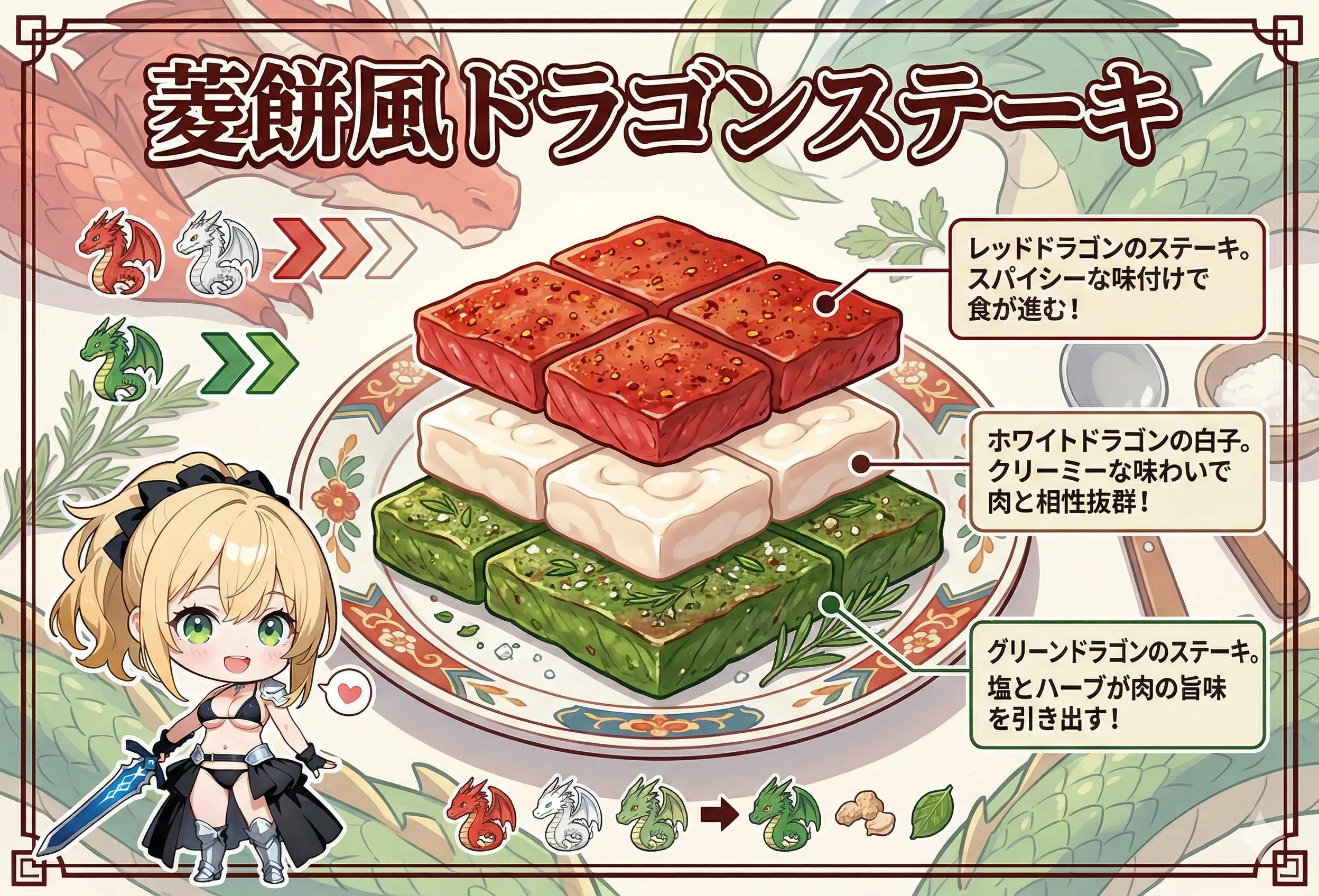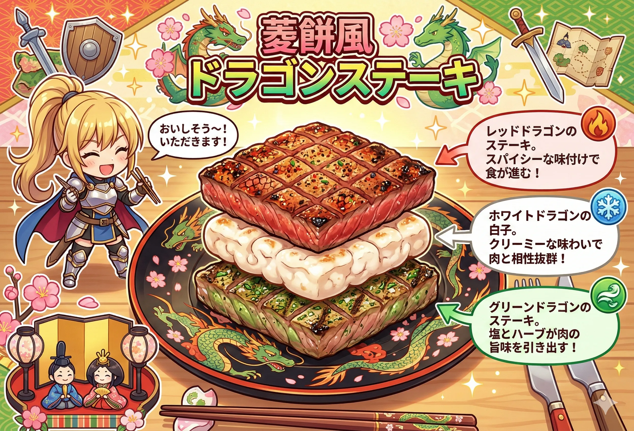 【菱餅】菱餅風ドラゴンステーキ