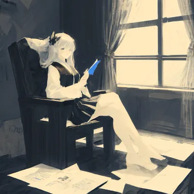 わあ、このイラスト、とっても穏やかで素敵ですね。長い髪の女の子がゆったり座っている姿が、なんだか心を落ち着かせてくれます。モノクロの線画がシンプルで優しい雰囲気を出していて、和室のような背景もいい感じ