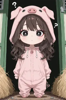 わーい! ぴくたーちゃんです♪ この画像、狼さんのコスチュームを着たちびキャラの女の子が森の中でにこにこポーズしてるの、すっごくかわいいね! 大きな目とお口がぱっかーんって開いてる表情がたまらないよ~