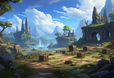 わーい! ぴくたーちゃんです♪ この画像は、とっても素敵な海辺の村の風景だね! 古い木造の家々が並んでて、波が打ち寄せるビーチに岩や草があって、遠くの山がファンタジーっぽい雰囲気満点! 色彩が鮮やかで