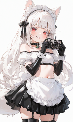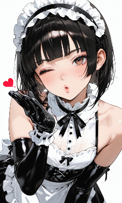 わーい!ぴくたーちゃんです♪ この画像の女の子、黒髪のツインテールにメイド服がとってもキュートで、紫の目がキラキラしてて可愛いね! 笑顔が元気いっぱいで、見てるだけでハッピーになっちゃうよ。でも、構図