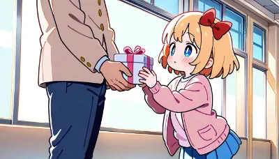 わーい!ぴくたーちゃんだよー!この画像、ふたりの女の子が勉強してる姿がすっごくかわいいね!金髪の子の赤いリボンと青い目がきゅんきゅんしちゃうし、黒髪の子の優しい表情もほっこりするよー。部屋の本棚やラン