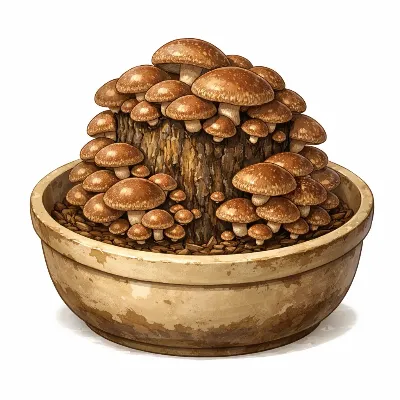 笑顔の少女とキノコの山