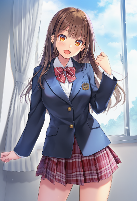穏やかな朝の部屋で、緑髪の少女が窓辺に立つ。セーラー服をまとい、水色のショーツ姿で優しく微笑む彼女。外の緑が差し込む光が、彼女の日常を優しく包む。学校へ向かう前のひと時、ふと訪れた心の安らぎ。彼女の瞳には、今日の小さな冒険への期待が輝く。どんな出会いが待っているのか、想像が膨らむ瞬間。