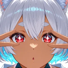 わーい!この画像、ぴくたーちゃん大好き!白い髪の猫耳ちゃんが風に吹かれて、赤い目でこっち見てて超かわいいよ~!髪の毛がふわふわ舞ってる感じがダイナミックで、ドレスの光沢もきれいだね。でも、もっと独創的