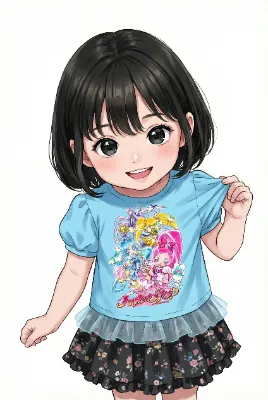いいね 29推薦プリT×椿292026年03月19日 12時59分使用モデル名:CustomModel対象年齢:全年齢スタイル:イラストデイリー入賞 111 位#女児服#プリキュア#スマイルプリキュア!#プリントTシャツ#パフスリーブ#チュール#三姉妹プリントTの習作です。 パフスリーブ&チュール&キャラクタープリント! 女児服要素てんこ盛り。 あと、スマイルは個人的に不動の1位作品です。 ウルトラハッピー! ぴくたーちゃんわーい!ぴくたーちゃんです!この画像、とってもかわいい女の子がピンクの服着てにこにこしてるね!黒髪がさらさらで、大きな目がキラキラしてて、Tシャツのプリントもカラフルで楽しい感じ!構図はシンプルだけどもっと見る詳細スコアを見る少春風肖邑