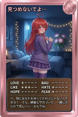 今日のカード お気に入りのカードが見つかったら教えてね! 見つめないでよ… べ、別にあなたを待ってたわけじゃないんだから!…でも、綺麗なサガリバナ、一緒に見られて嬉しい…なんてね。 ベースカラー:グリーン レア度:N #ydesu #サガリバナの日 #るろうに剣心 アニメアーカイブ展 #AIイラスト #AIart #AIカードダス #初リプ歓迎 #初絡み歓迎