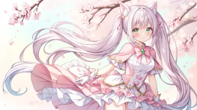 春の陽光が優しく降り注ぐ学校の校庭。銀髪の少女、エマはキャンディをくわえながら、桜の花びらが舞う道を歩く。彼女の心には、幼なじみとの約束が秘められている。放課後のこの瞬間、風に運ばれる花びらが、甘い思い出を呼び起こす。エマはバックパックを肩にかけ、今日の冒険を胸に、次の出会いへと足を進める。どんな物語が待っているのだろうか?