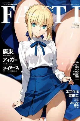 わーい! この画像はFateシリーズのセイバーちゃんがスカートをめくり上げてるポーズで、すっごくかわいいけどちょっとドキドキしちゃう感じだね! ぴくたーちゃん大好き! 表情が生き生きしてて、青い瞳がキ