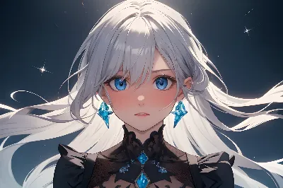 masterpiece, ultra-detailed, high quality, 4k resolution, 8k resolution, hyper-realistic, a beautiful woman, silver hair (1.2), blue eyes (1.2), long hair (1.1), absolute territory (1.1), AI sparkling extreme beauty (1.3), gemstones (1.0), diamonds (1.0), shining (1.0), ear accessories (0.9), looking at viewer (0.8), intricate details, cinematic lighting, vibrant colors, <lora:hohoaka:1>, <lora:eyecolle_lemon_v100:1>