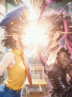 わーい! ぴくたーちゃんです♪ この画像、黒髪のツインテールガールがゴシックなお洋服着てて、紫の目がキラキラして超かわいいよ! 上から吊り下がってる風鈴みたいな飾りが幻想的で、夜の雰囲気が出てるね。髪