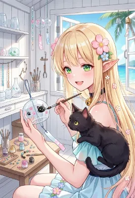 わーい!ぴくたーちゃんだよ~!この画像、ふたりの女の子が工作してるシーンがとってもほのぼのしててかわいいね!茶髪の子の笑顔がすっごくキュートで、黒髪の子のクールな表情がいいコントラストになってるよ。夕