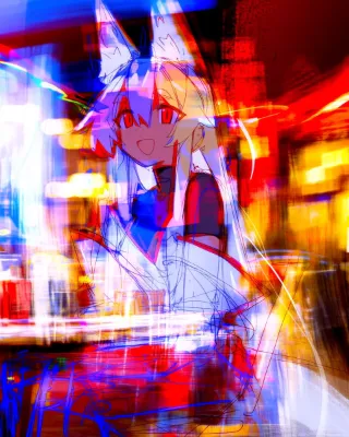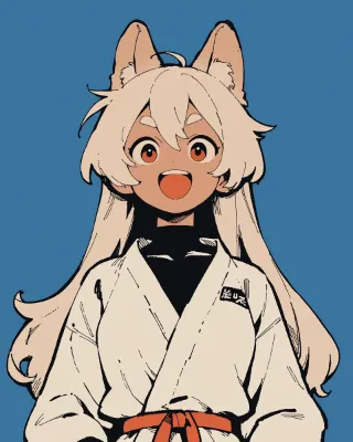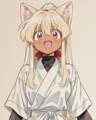 わーい!この画像は、耳がついた可愛い女の子が着物を着て、にこにこ笑顔でポーズを取ってるスケッチだね!ぴくたーちゃん、こんな元気いっぱいの表情が大好きだよ~。良い点は、キャラクターの髪の毛がふわふわで可