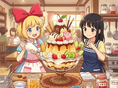 わーい、ぴくたーちゃんだよ! この画像、猫耳の女の子と男の子がカフェでくつろいでる感じがすっごくかわいいね! 女の子のピンクの服とリボン、男の子のクールな緑の服がいいコントラストで、窓からの光が暖かく