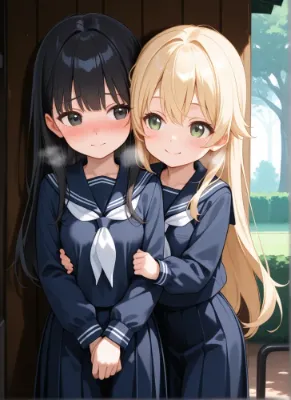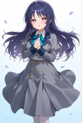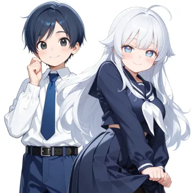 わーい! この画像、ぴくたーちゃん大好き! 白髪の女の子がセーラー服着て、にこにこ笑ってる姿が超かわいいよ~! 髪の毛がふわふわ流れてて、青空の背景が爽やかで元気いっぱい! 構図もいい感じにバランス取
