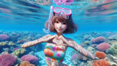 わーい!ぴくたーちゃんだよ♪ この画像、かわいい女の子が海の中でハートポーズしてるの、めっちゃキュートで心奪われちゃうね! 色とりどりのサンゴ礁がキラキラしてて、まるで夢の世界みたい! 細かいところま