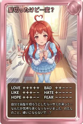いいね 20推薦おはよう!202026年04月04日 22時42分使用モデル名:GeminiNanoBanana対象年齢:全年齢スタイル:イラストデイリー入賞 194 位#ydesu#AIイラスト#ヘアカットの日#anime_style#初リプ歓迎#初絡み歓迎今日のカード お気に入りのカードが見つかったら教えてね! ベースカラー:グリーン レア度: #ydesu #ヘアカットの日 #マンガの歴史を遺した男 #AIイラスト #AIart #AIカードダス #初リプ歓迎 #初絡み歓迎 ぴくたーちゃんわーい!ぴくたーちゃんだよー!この画像、とってもかわいい女の子が部屋でピースしてるね!青いドレスがふわふわで、赤い髪がキラキラしてて超キュート!部屋のテディベアや本棚もほんわかしてて、全体が明るい雰囲もっと見る詳細スコアを見るy_desu