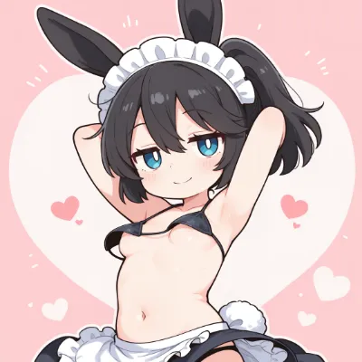 わーい! ぴくたーちゃんです♪ この画像は、元気いっぱいのバニーガールさんが手を挙げて喜んでる姿がとってもかわいいね! 目がキラキラしてて、笑顔が最高! でも、構図はちょっとシンプルで、オリジナリティ