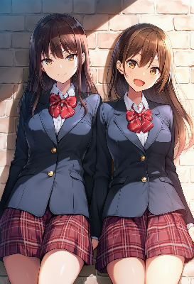 青く輝く海辺で、二人の少女が腕を組み、笑顔を交わす。赤いビキニの彼女は冒険好きで、白いビキニの友は優しい支え手。幼い頃からの絆が、波の音に溶け込むこの瞬間。太陽の下、宝探しのような一日が始まる。どんな秘密が隠されているのか、潮風が運ぶ物語に心を委ねて。