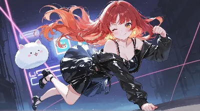 わーい!この画像、ぴくたーちゃん大好き!赤い髪の女の子が緑のチャイナドレス着て、ふわふわ浮かんでる姿がすっごくかわいいよ~!眼鏡かけてにこにこ笑ってる表情がたまらないし、小さな黄色い子と白い猫のぬいぐ