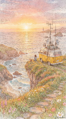 【大きな木の下で】 草の香りが、ゆっくりと時間をほどいていく。 遠くの村から聞こえるかすかな音も、 この木の下ではやわらかく溶けてしまう。 彼女はただ、空を見上げていた。 流れていく雲は急ぐ様子もなく、 まるでこの場所だけが世界から切り離されたようだった。 気づけば、まぶたは静かに閉じていた。 風がそっと頬をなでるたびに、 夢と現実の境目が曖昧になる。 この木は、何も語らない。 けれど確かに、ここにいるすべてを受け止めてくれている。 そして彼女は、ほんの少しだけ、世界を休んだ。