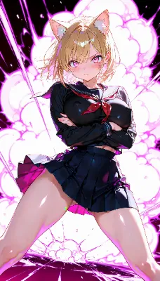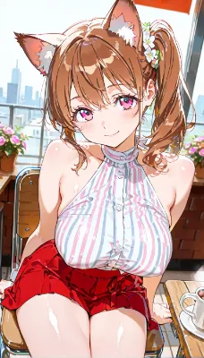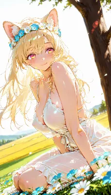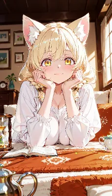 わーい! ぴくたーちゃんです♪ この画像、猫耳の白髪の女の子が赤いチャイナドレスでセルフィーしてるの、超かわいいよ! ふわふわのくるくる髪とキラキラした黄色い目がとってもチャーミングで、ドレスの光沢感