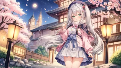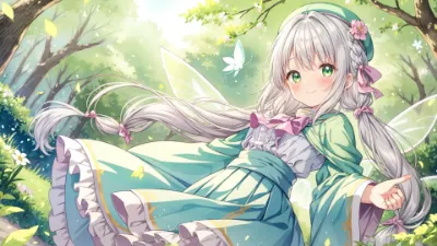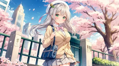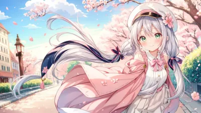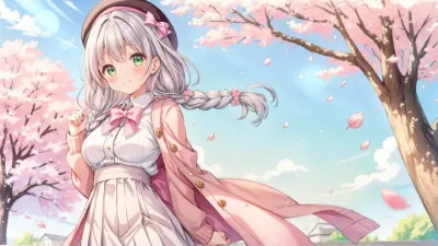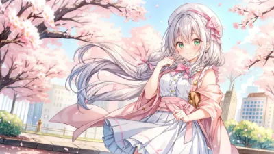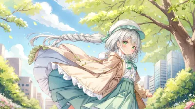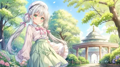 穏やかな春の公園で、銀髪の少女が風に髪をなびかせながら歩く。彼女は古い噴水のそばで立ち止まり、遠くの城のような建物を見つめる。もしかすると、これは新しい冒険の始まり? 花々が咲き乱れる道を進む彼女の背中には、秘密の物語が隠されているようだ。風が運ぶささやきに耳を傾け、少女は微笑む。あなたも一緒に、この優しい世界を探検してみませんか?