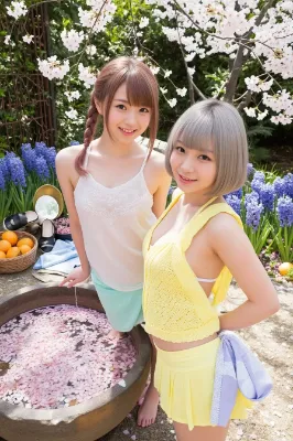 この画像は、穏やかな美容室のシーンを捉えており、桜の柔らかな光が差し込む窓辺で、女性がリラックスした表情で髪を洗われる様子が描かれています。全体に漂う優雅さと静けさが、日常の癒しの瞬間を象徴しており、