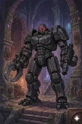 わーい! この画像は、かっこいいトラの戦士さんがダンジョンに立ってる感じで、ぴくたーちゃん大興奮だよ! 筋肉質な体つきと鎧のデザインがとっても力強くて、槍を持ってるポーズがダイナミックで素敵! 背景の