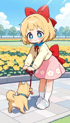 わーい!ぴくたーちゃんです!この画像、夏祭りの楽しい雰囲気いっぱいで、ライオンさんの着ぐるみと女の子たちが踊ってる姿が超キュートだよ~!背景の提灯や人々が賑やかさをプラスしてて、全体的にほんわか幸せな