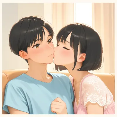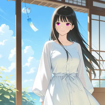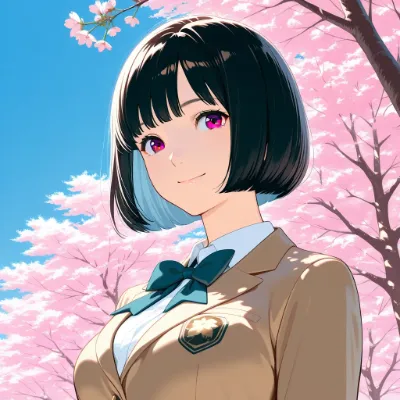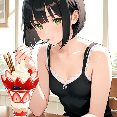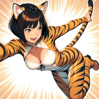 (a girl, dark blue hair, bob cut, blue eyes, dark skin, medium breasts:1.4), smile, open her mouth,
