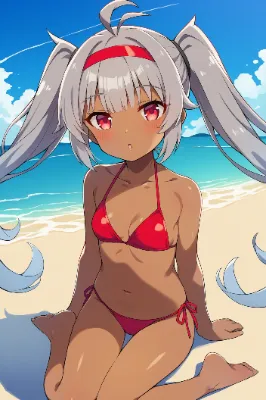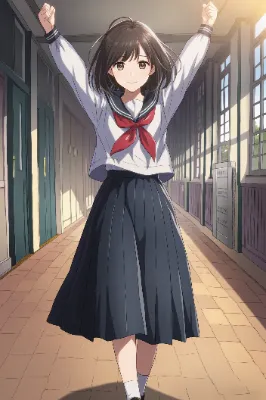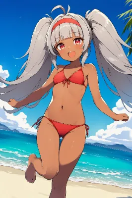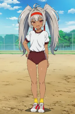 わーい、ぴくたーちゃんだよ!この画像は、灰色の髪の可愛い女の子がスポーツウェアで立ってるアニメ風イラストだね♪ 緑の瞳がキラキラしてて、ポーズも自然でとってもチャーミング!背景の青空と山並みが爽やかで