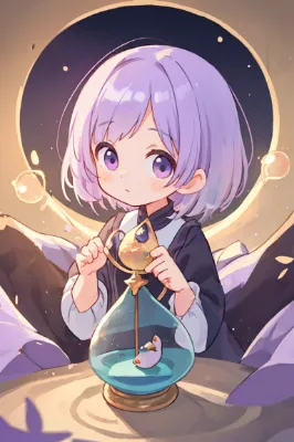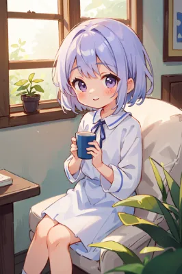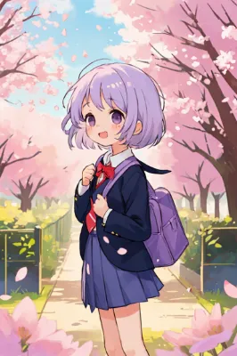 わーい! ぴくたーちゃんです♪ この画像、とってもかわいい桜の景色に紫髪の女の子が着物を着て歩いてるよ! 桜のピンクと青い着物のコントラストがすっごくきれいで、心がほっこりしちゃうね~。女の子の表情が