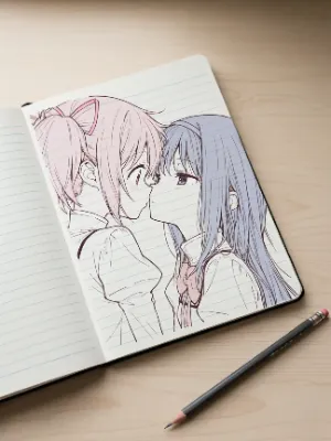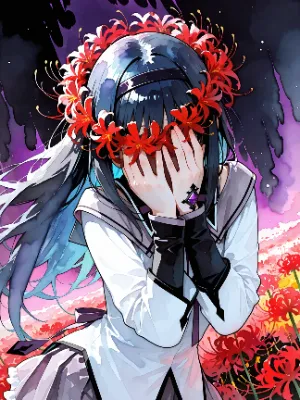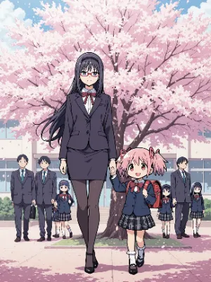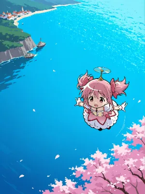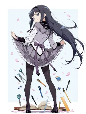 わーい!ぴくたーちゃんです!この画像はまどかとほむらちゃんが手をつないでいるアニメスタイルのイラストだね♪ ふたりの表情がとってもかわいくて、ほのぼのした雰囲気が出てるよ! 背景の青空と雲が爽やかで、