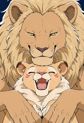 (masterpiece1.2, best quality, high resolution), ultra detailed,beautiful anime style,lion,サバンナ,Joyful Expression with Dreams,
